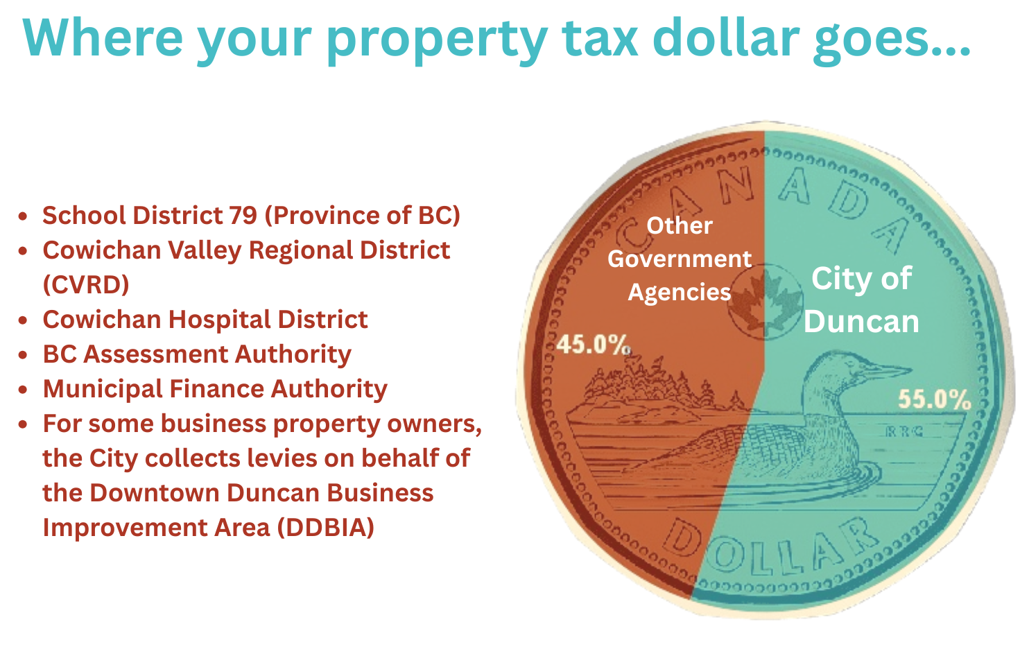 through local taxes goes to the City of Duncan, and 45% goes to other governments and agencies.